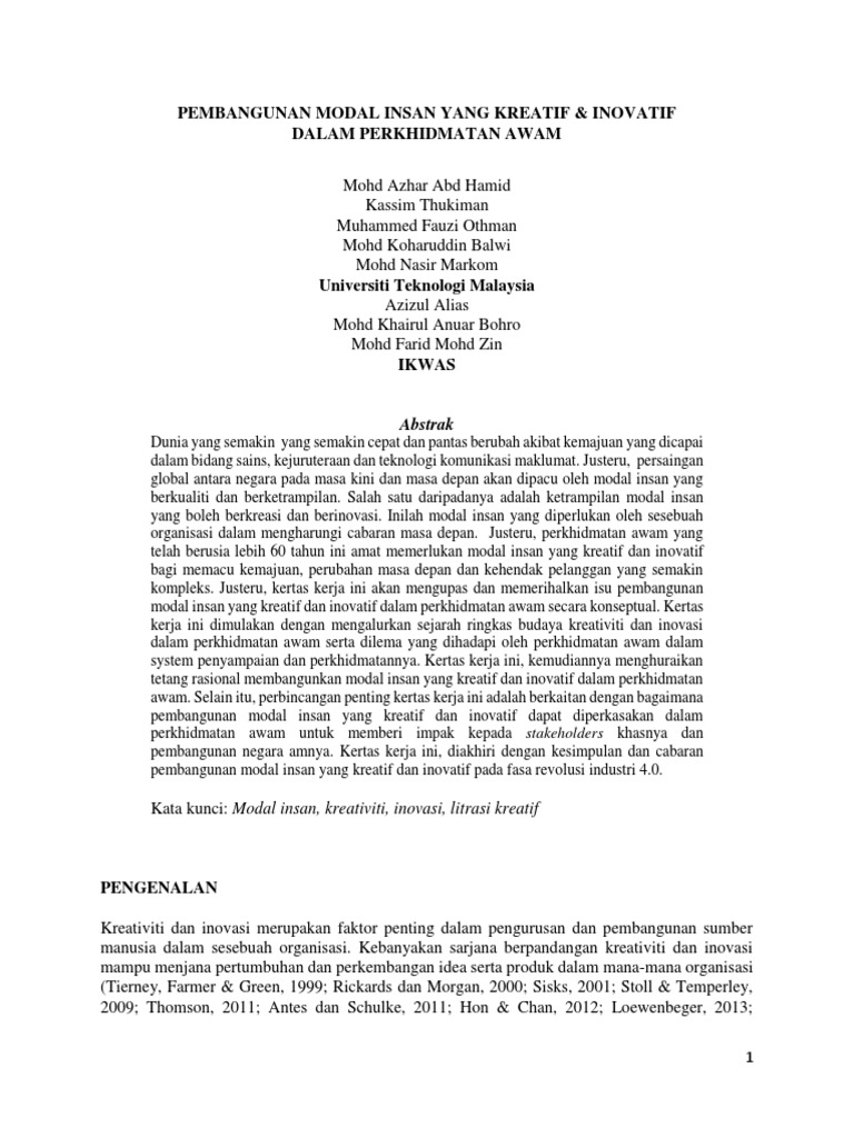 Kreativitidalamorganisasikearahpembangunanmodalinsanyanginovatif Docx