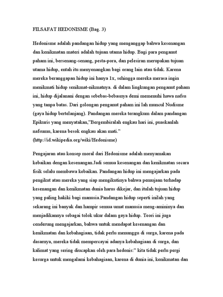 Maksud Hedonisme Menurut Hedonisme Dan Materialisme Facebook