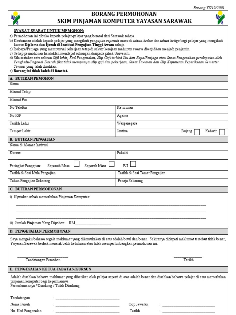 Borang Permohonan Skim Pinjaman Komputer Yayasan Sarawak