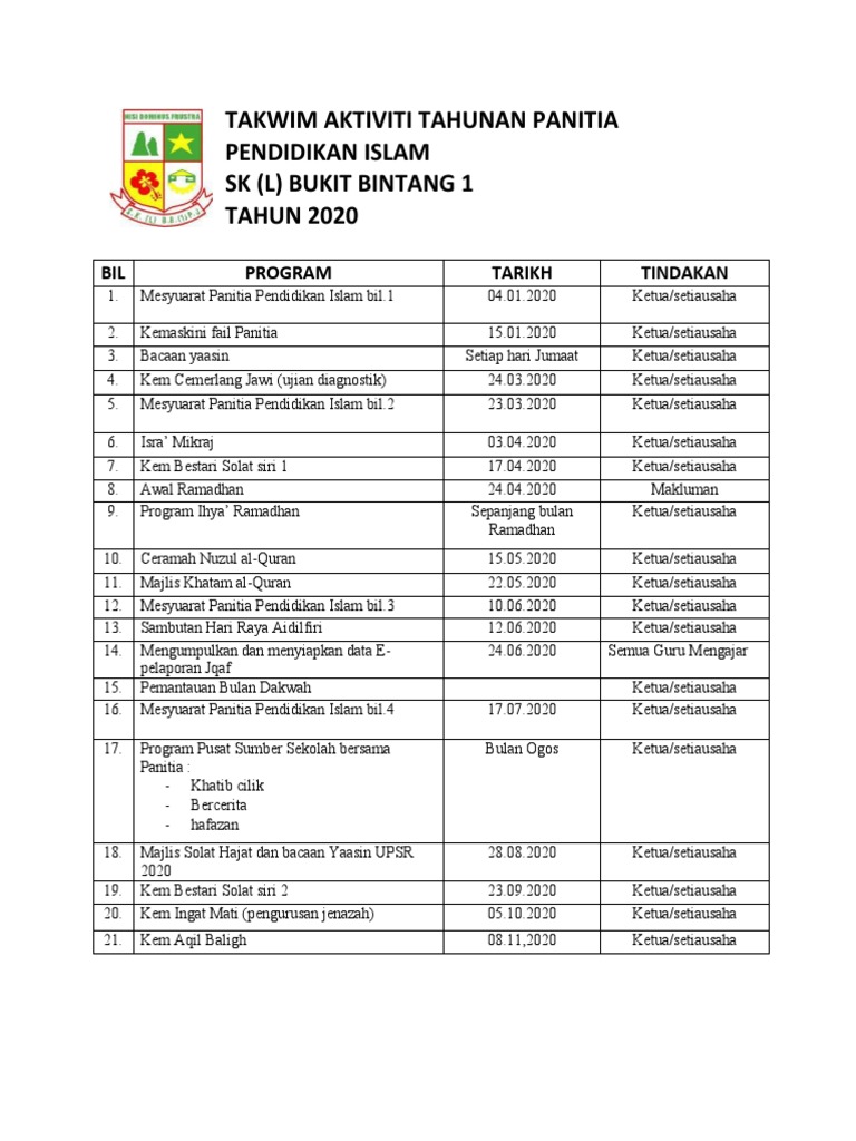 Aktiviti Tahunan Panitia Pendidikan Islam 2020
