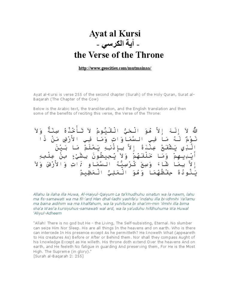Allahu La Ilaha Illa Huwal Hayyul Qayyum Ayatul Kursi